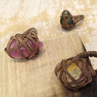 丁寧に下処理して、その蔓で美しい天然石を巻き