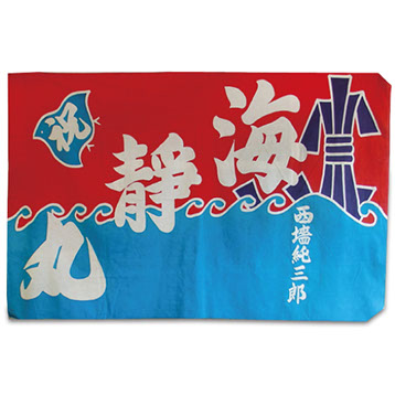 大漁旗にしてはシンプルな色づかいで